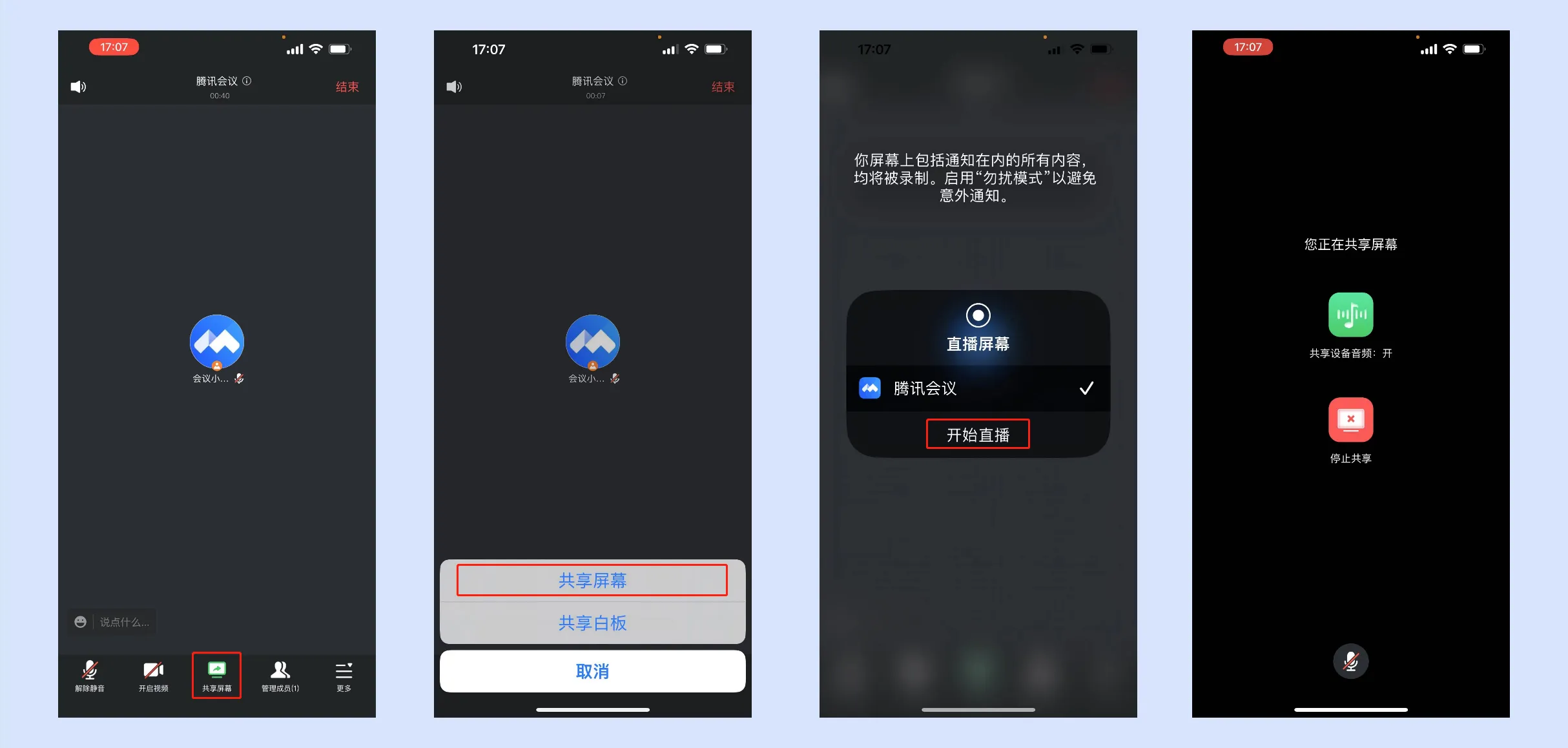 如您用手机或pad绘图,请在录制时保证开启屏幕共享